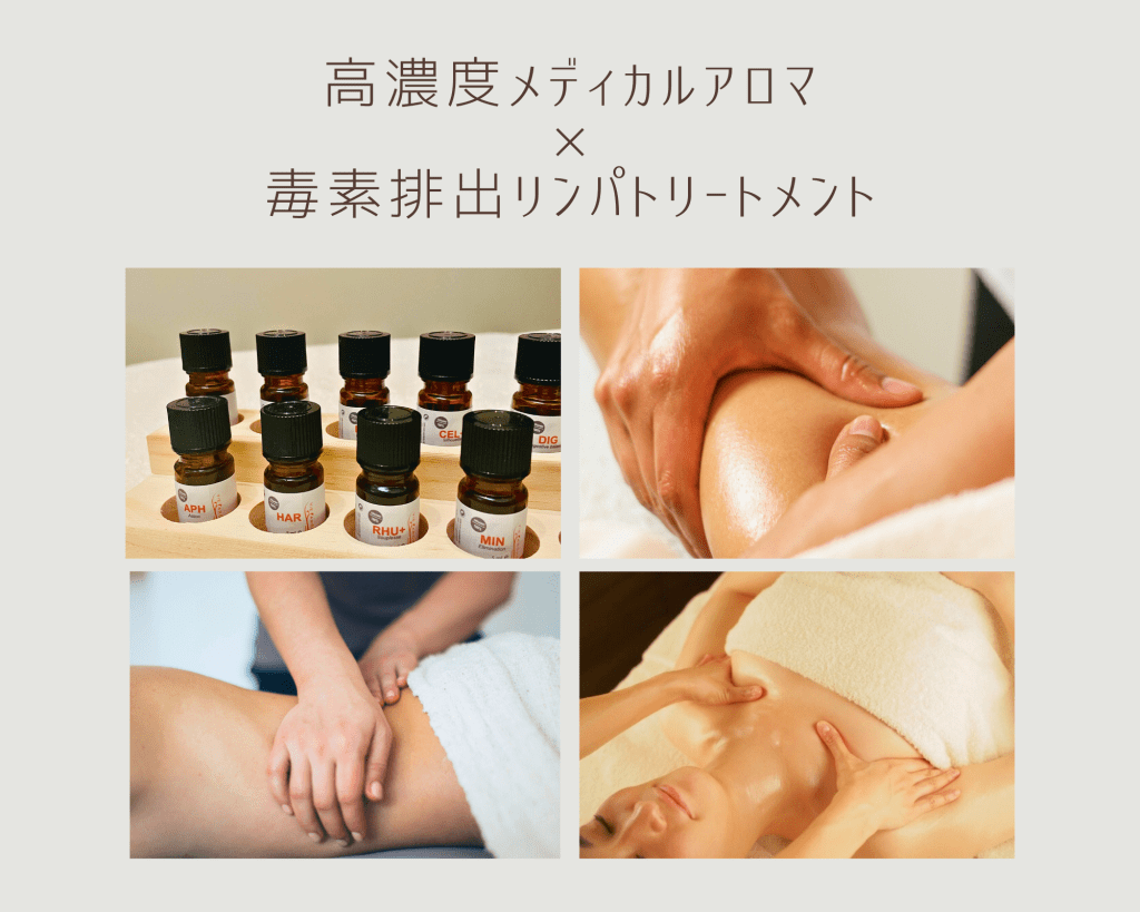 香りの癒し効果だけではなく、体調不良の改善や病気の予防を目的としたフランスのオーガニックアロマブランド「ヴィアローム」を使用。原液塗布が可能な「アロマフリクションオイル」を5%程度の濃度で希釈し、トリートメントを行います。(お肌の弱い方には濃度を低くする場合もございます)カウンセリングでコリやむくみ、不眠などお悩みや症状に応じてセレクトします。キャリアオイルは、デトックス効果・アンチエイジング効果の高いセサミオイルを使用。