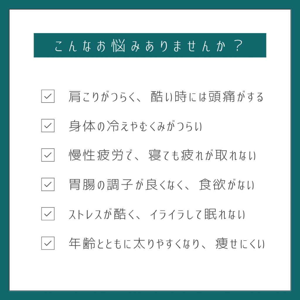 ・自律神経に働きかけ、寝ても疲れがとれないなどの慢性疲労や胃腸の不調を解消