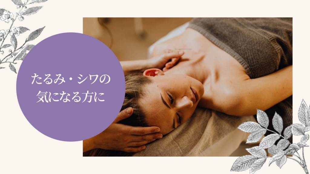 リラクゼーション効果だけではなく、肩こりやむくみ、冷え、慢性疲労の解消、たるみやシワ、くすみの改善など高いデトックス効果、アンチエイジング効果をご実感頂いております。