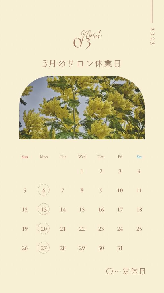 それでは、3月もみなさまのご予約・ご来店を心よりお待ちしております。
