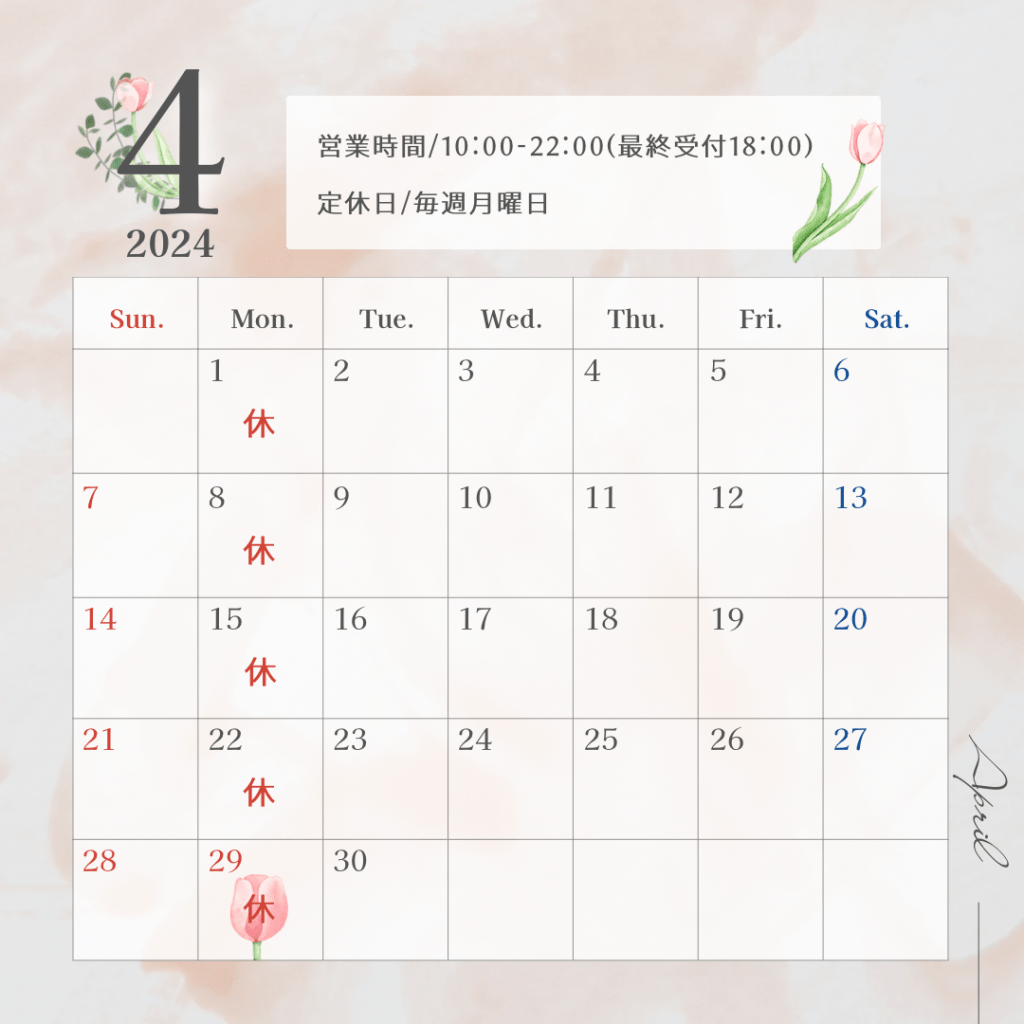 それでは、4月もみなさまのご予約・ご来店を心よりお待ちしております。