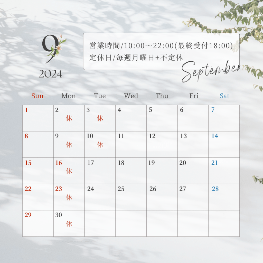 それでは、9月もみなさまのご予約・ご来店を心よりお待ちしております。